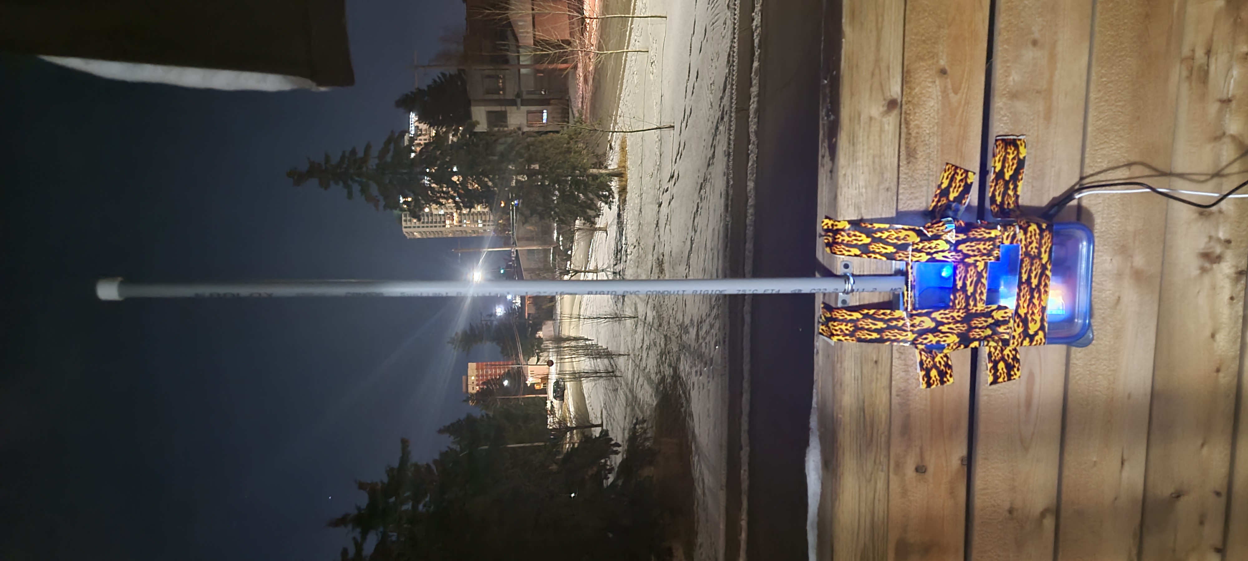 In the meantime, the system components were placed into a Tupperware container and sealed which was sealed for weatherproofing; the 8-section antenna was placed inside the PVC conduit and the end cap was placed on top;