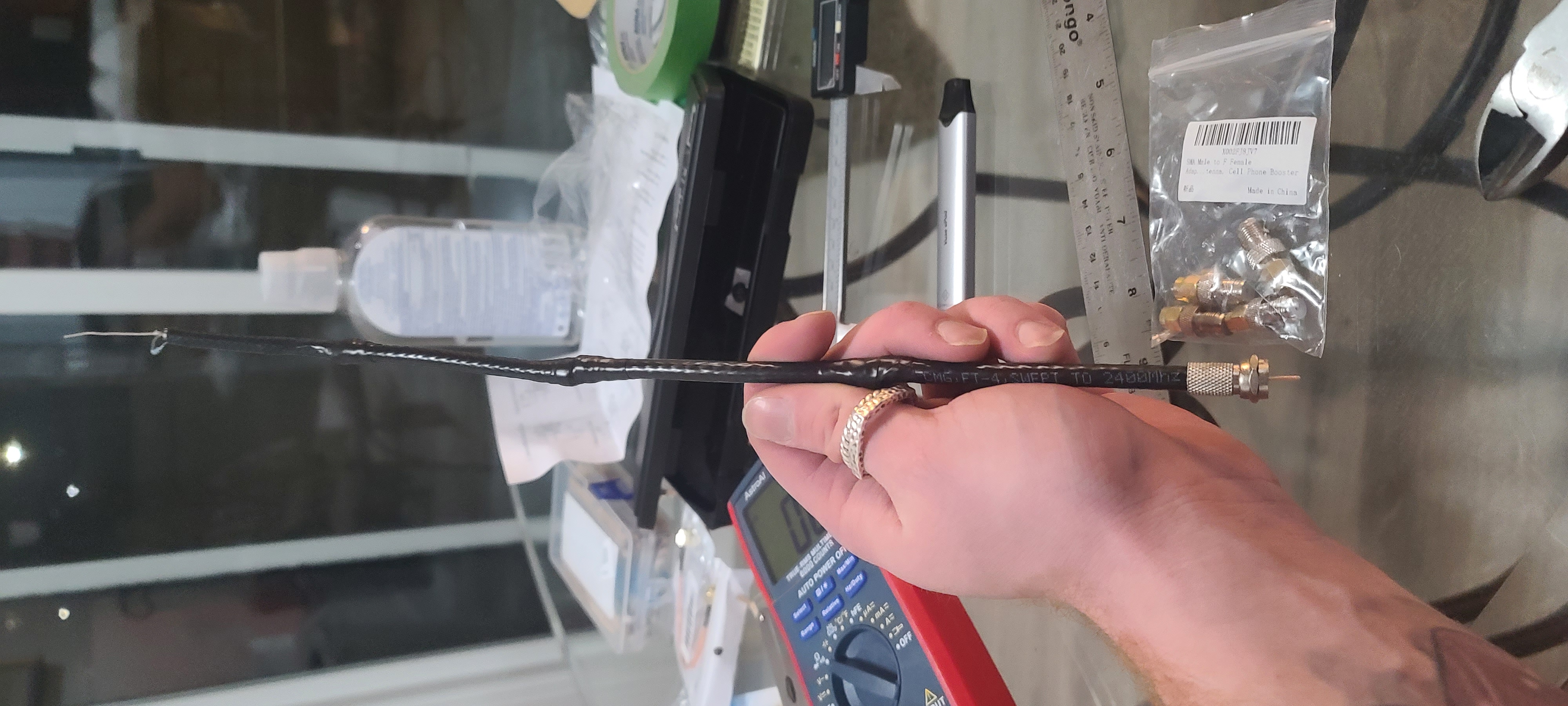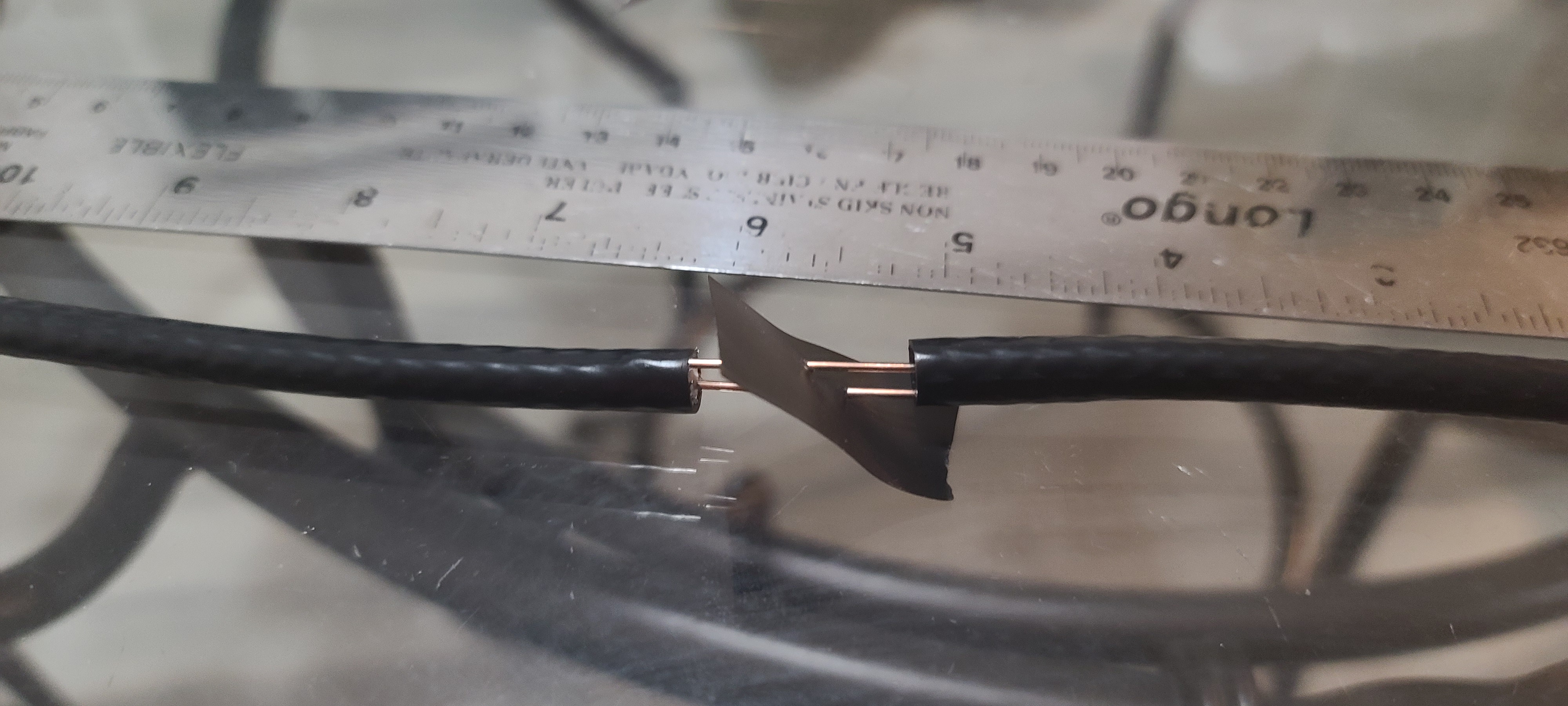 The coaxial lengths were put together by reversing the inner and outer conductors with strips of electrical tape in between them to ensure that they would