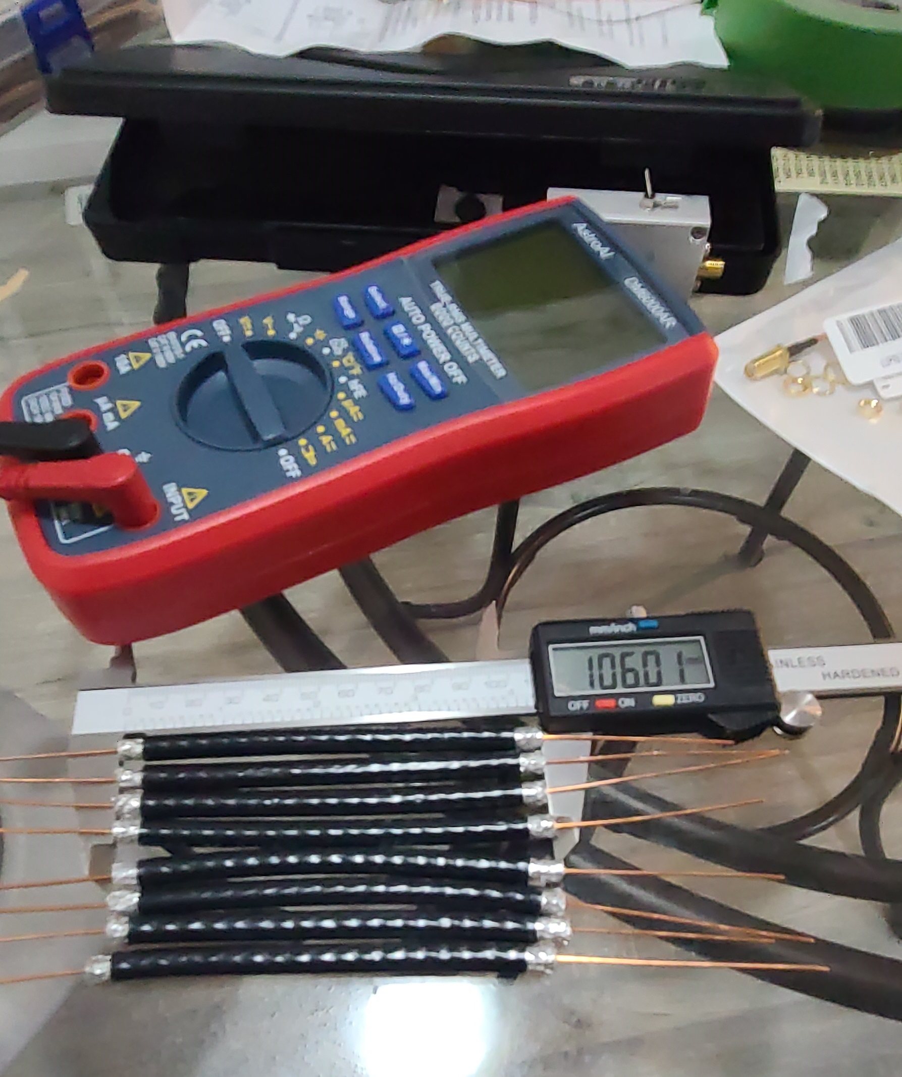 To make precise measurements, a caliper was purchased and sections of wavelengths were cut (a millimetre or so smaller to account for increased length
