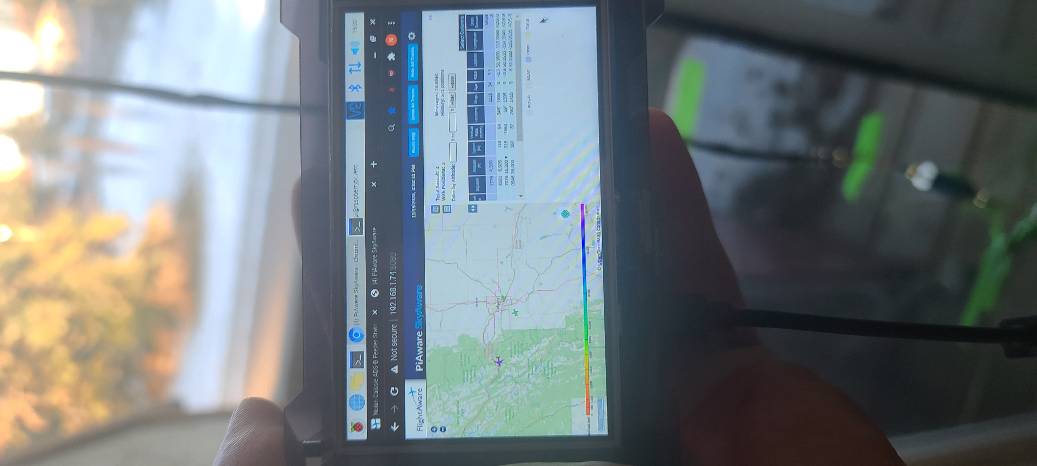 Figure 9: Testing the PiAware Software, Antenna, Filter, and Amplifier